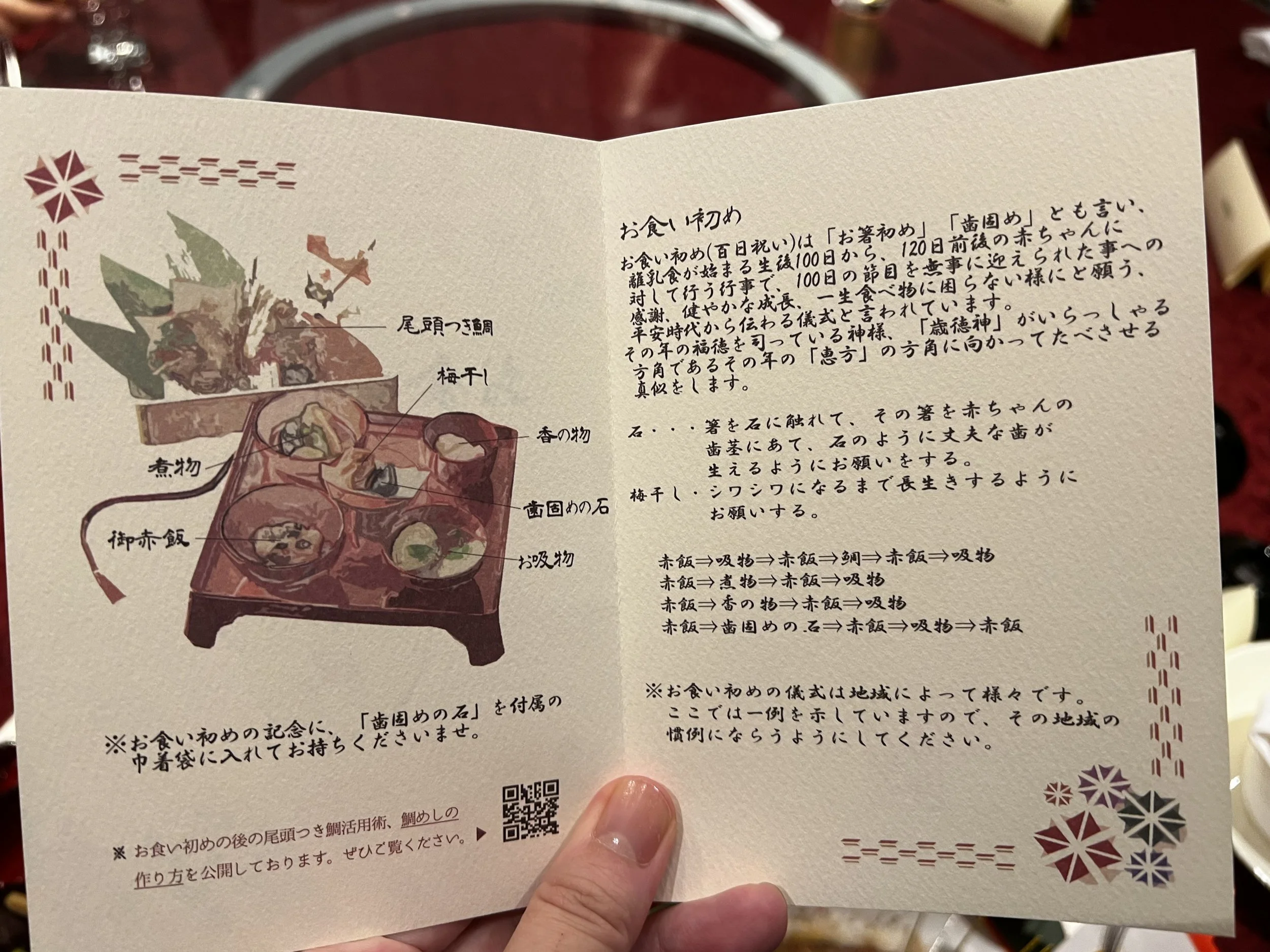 Okuizome comes around 100 days after birth, a symbolic “first meal” wishing the baby a life without food troubles.