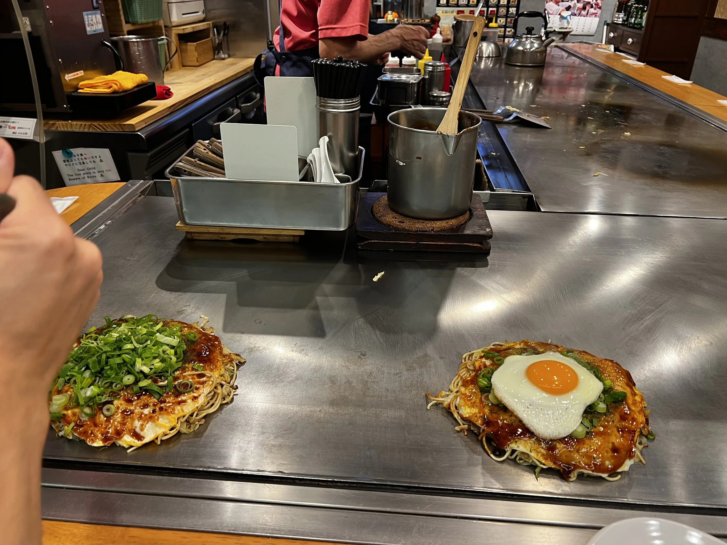 Hiroshima is famous for oysters and okonomiyaki, and for good reason. Oyster farming is big there, and the local okonomiyaki style is very much its own thing. Layers instead of mixing, noodles included, and every shop proudly serving its own version.